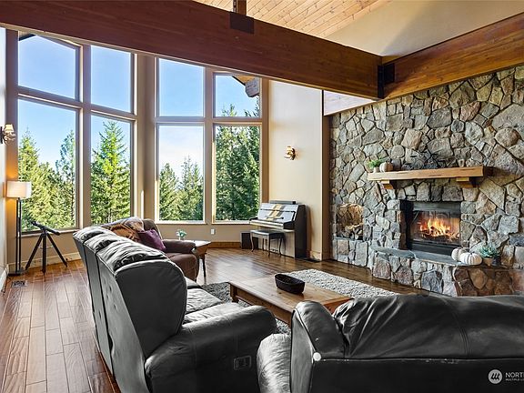 Mountain retreat w/views of the Stuart range on 3 acres! With 5719 sft & attention to detail seen in the soaring ceilings, wood beams & a see-through fireplace, this is one of a kind! Take in the views from the open concept family & dining rms and kitchen, which boasts a chef's gas stove surrounded by rockwork! With three ensuite bedrooms on the main floor, a large open loft space that can be a bunk room or office, plus a massive basement rec. room, this is the perfect home for large gatherings! Don't miss the covered porches, 3 car gar, firepit area & miles of nearby forest service trails, rivers, lakes & Skiing. This home was built w/expansion in mind...the loft has a roughed in bathroom while the bsmt is ready for a kitchen!