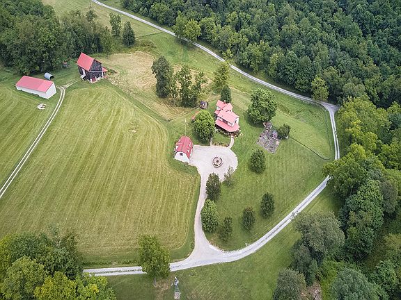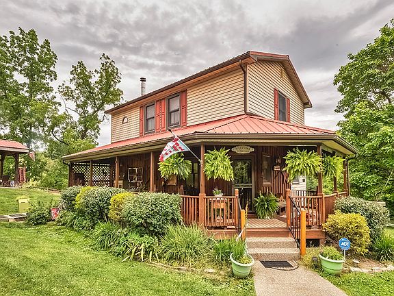 Incredible 63.5 acre property featuring a remodeled and expanded 1900s farmhouse, detatched garage with cottage house, barn, large equipment shed, fenced garden, pond, 3 pastures, 2 hayfields, and ample hunting areas with stands and a she-shed hunting house! The home features 3 bedrooms and 2 baths with an addition added that includs the large living room, kitchen, and main bedroom above. There is a new metal roof and new windows throughout. The large wrap around porch overlooks the gorgeous acreage on the property. The pond has it's own fishing house and floating dock for relaxing enjoyment! There are several out buildings, with one containing an outdoor fireplace, and even a firepit area in the center of the circular drive. This farm formerly had Hereford cattle and still has goats, so this could be used as a working farm if desired. All of the fencing has been replaced in the last few years. This meticulously maintained and updated home on acreage is just waiting to be yours.