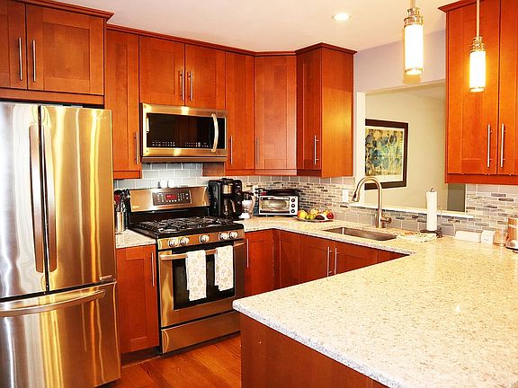 Beautifully decorated and updated colonial with Victorian charm! This spacious home has everything todays buyer is looking for! Upon entry, you will be greeted by an open floor plan and hardwood flooring. The home boasts two bay windows and one is a window seat in the master bedroom. The newly updated kitchen features wood cabinetry, quartz counters, island seating for two, deep stainless steel sink, tile backsplash and gas cooking with open views of the dining area and the family room. This home has a formal living room, family room and finished basement! Upstairs find the beautifully updated bathroom complete with tile surround, glass doors and a new vanity! The master suite is completed by a walk in closet and en suite bathroom. The home is serviced by gas heat, gas hot water, central air, public water and sewer. Check out the back yard! Beautiful arbor over the patio for shade and a fence to peace of mind. Great commuter location too!