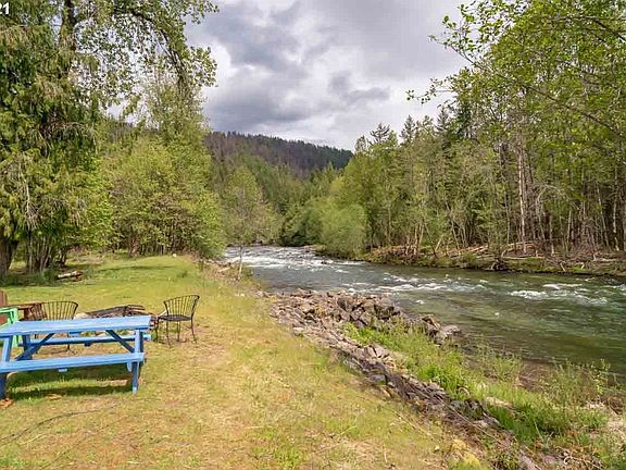 Amazing River frontage and access. Grab your fishing pole or just listen to the river all day/night while stargazing. This Idanha home has a newer septic system, roof, updated plumbing, and electrical. Make it your own private retreat, or continue the established Airbnb business. Home also includes an oversized 2 car carport, and RV Pad with hookups.