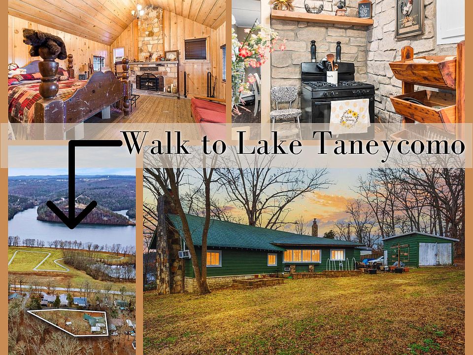 Discover the charm of lakeside living with this unique property! Not only does it boast stunning views of Lake Taneycomo, but it also offers flat land for a substantial workshop and the freedom to have your own chickens. Embrace a lifestyle where nature meets convenience - a perfect blend of scenic tranquility and practicality awaits you! Step into the charm of a 1920s masterpiece, where unique architectural details unfold at every turn. This one-of-a-kind home boasts captivating build-outs, a vaulted ceiling master bedroom with a cozy fireplace, all set against the picturesque backdrop of Lake Taneycomo. Experience luxury living in this master bedroom retreat featuring a soaring vaulted ceiling that adds an airy, spacious ambiance. Cozy up by the impressive rock fireplace, creating the perfect blend of elegance and warmth. Nestled on a spacious half-acre oasis, this historic gem is not just a home; it's a timeless experience with the perfect blend of character and modern comfort. Explore the beauty of yesteryear while enjoying the breathtaking views and the serenity of a flood-free haven. Welcome to a home that transcends time and embraces the allure of Lake Taneycomo living.