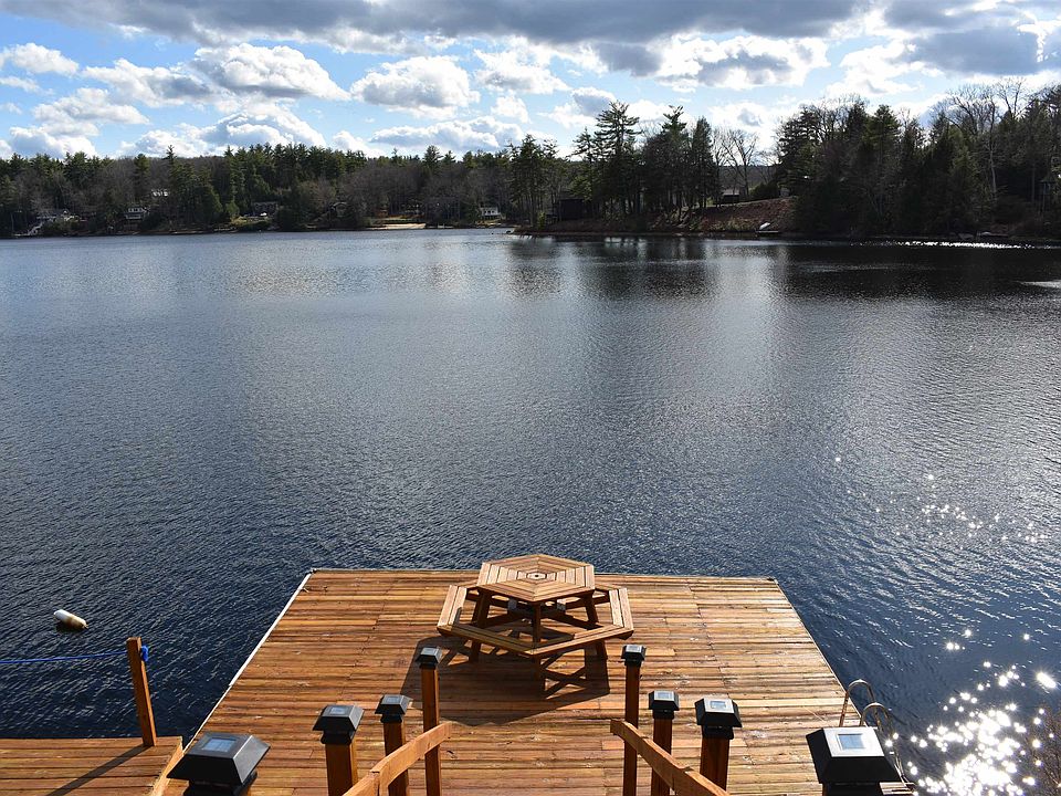 Incredible year round waterfront home on Horace Lake. Home features over 200 feet of waterfront, newly reinforced docks, and large heated detached garage. Updated kitchen, wide plank pine floors and gorgeous decks and docks to take advantage of the lake. One of the best places to vacation where you live.