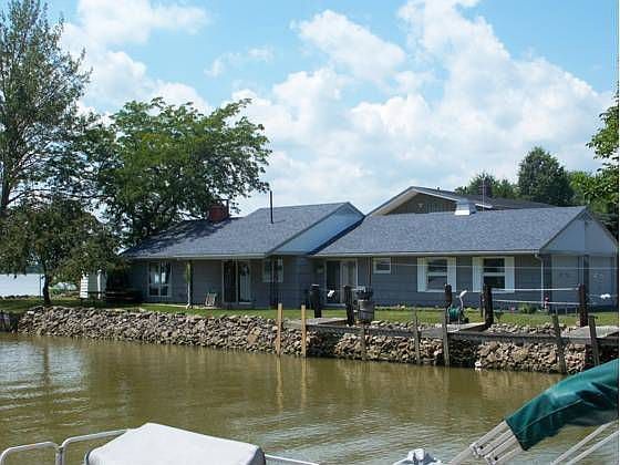 210ft of water frontage on corner lot with dock at door! Minutes to Lake Erie, the Islands, Cedar Point and all of the wonderful vacationland destinations + great fishing reefs. Great location for water skiers & jet skis, canoeing & more. Operational lighthouse with storage inside approximately 25ft high. The focal points of the living room are the views of the widest mouth of the Portage river and a beautiful brick fireplace. The TV room can be used for an extra sleeping area. NO ASSOCIATION! Owner is licensed Real Estate Agent in the State of Ohio.