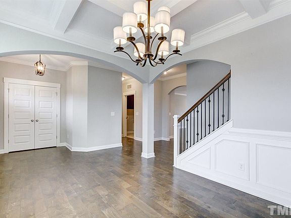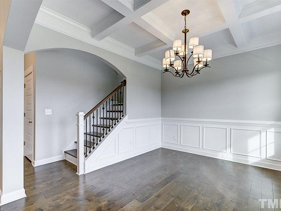 Everything about this one draws you in. Rocking chair front porch calls to you. Inviting foyer opens to Formal Dining marked by elegant coffered ceiling & wainscoting. Remarkable chefs kitchen w/ grand island, gas cooktop, double wall ovens. Dual Master Suites.Desirable Master on main w/ ensuite boasting his and hers vanities, w-i-c, & 5ft tiled walk-in shower. Second floor includes additional Master, three spacious bedrooms and Bonus Room. Two-car side load garage AND a single car detached. Welcome Home