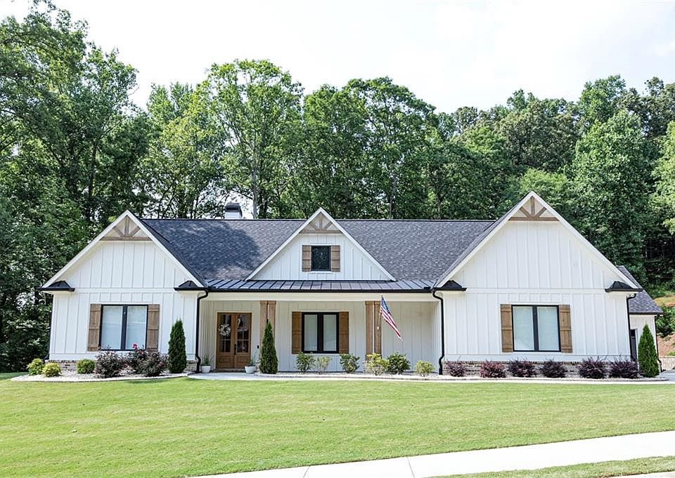 Don't miss out on this beautiful 4 Bed/3 Bath, ranch-style home with the modern farm house finish, 10 foot ceilings, European imported windows, 4 car garage, located just minutes from I-85. This custom home features beautiful landscaping and a sodded front and level back yard meticulously cared for. As you step into the home you will see the open concept living room with vaulted ceilings, built-in book shelves, cabinetry flowing into an above-standard kitchen with gorgeous white cabinetry, a large walk-in pantry, stainless steel appliances, gas cooktop, island with custom additional cabinets, and a breakfast area overlooking the backyard. From the kitchen you will step into the large bedrooms and the custom laundry room. Owners suite features beamed ceilings, an freestanding tub, oversized shower, double vanity, and a view into the back yard. The most impressive part of this home is the private backyard with a brick fit pit, extended back patio, perfect for entertaining, and room for any additions. This home is located next to an unbuildable corner lot allowing for maximum privacy. Scenic Falls of Braselton is an exclusive gated community with a lux clubhouse, custom pool, tennis courts, basketball court, walking trails that run along the creek and waterfall, and pavilion. This tasteful home will not last long!