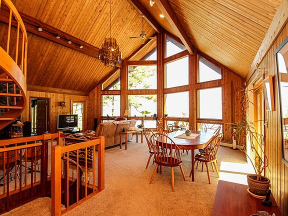 Chalet style home with beautiful views of Lake Champlain, Burlington and the Green Mountains. This property boasts 110+/- feet of waterfront on Lake Champlain with an engineered septic system and two car garage. Garage includes a workshop and large storage area upstairs, which could be easily converted to additional living quarters. Vaulted ceilings in the great room which allow for breathtaking views along with natural light. Multiple decks on the exterior of home, which would be ideal for entertaining. Back up generator to the house. Well maintained steps leading down to the waterfront/ docks. Docks to be included in the sale. This property is an absolute must see!