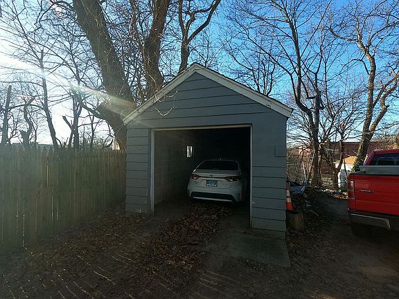 A nice front yard and a large backyard with a garage, perfect for outdoor activities or additional storage.
