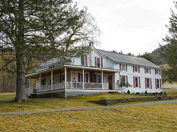 Magnificent Farm, Incredible Views, Meticulously Maintained. Home has 5 Bed, 2 full baths,original wide plank gorgeous floors,wood stove in dinning/sitting area. Unique kitchen with HUGE pantry room, wrap around porch,deck off master bed+ so much more.Barns are in great shape and ready for your animals. Fencing totally in tact. Storage sheds,pool in yard and the list goes on. Here's the picture perfect farm on an amazing 50+ acres. A MUST SEE!!