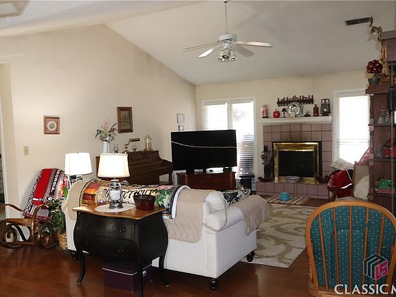 Rare one level, split bedroom plan home. On entering the great room, with its vaulted ceiling, you'll find a charming fireplace on the back wall. To the right is a spacious (full depth of house) laundry room, fully equipped kitchen with serving bar and plenty of eating space. To the right are 2 bedrooms and a share bath. The owner's suite is on the other side of the home. Here you'll be impressed by the trey ceiling in the bedroom. By the way, the bedroom opens to the outside. In the luxury bath area you'll find double sinks; tub and separate shower; and a giant closet. The lot is larger than the fenced area. You'll enjoy the low-maintenance in-ground pool as well as the private location at the end of a cul de sac. Don't miss this special home!