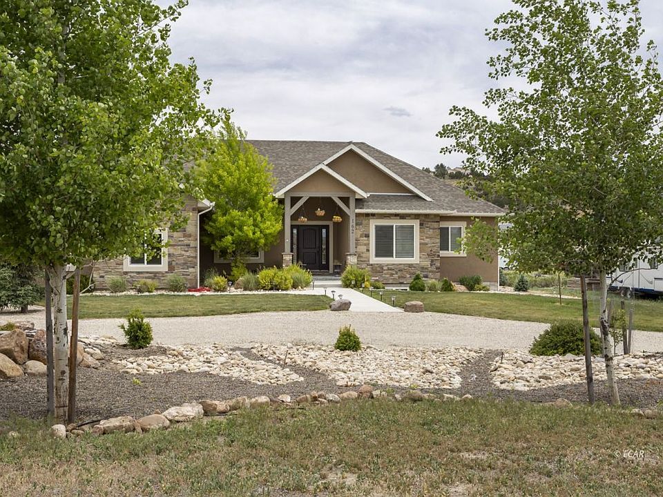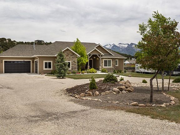 You'll be amazed at this upgraded 5 bed, 3.5 bath Custom home on a cul-de-sac with views of Spring Creek Marina!. Vaulted ceilings, large picture windows,beautiful hardwood floors, a gas fireplace and spectacular landscaping are just a few of the things this home offers. The kitchen features thick chiseled edge granite, a center island, double ovens, a gas stove cook top, a butlers pantry and an under the sink specialty vac! The large mud room and separate laundry room lead to a roomy 4 car garage that includes a hot and cold hose bib for washing cars. You'll love the tray ceilings, walk in closet, and attached bathroom with an over-sized walk in shower that sports a rain shower head and vertical shower head in the master suite. The basement is fully finished with a large family room, wood stove that heats the entire home in the winters, and built in wet bar with a dishwasher. It has 4 bedrooms, 2 full bathrooms and plenty of room for storage! The home sits on a 2 acre flat lot with a shaded back patio that's great for BBQ's in the summer. Property is landscaped all around and includes a large storage shed!