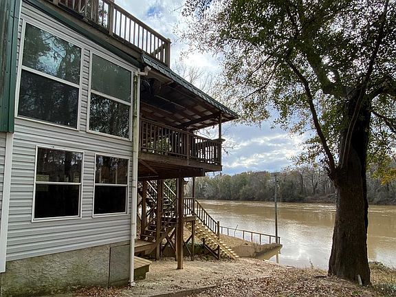 Peaceful and Relaxing, kick back on the back deck and enjoy the tranquil river view. The property rests on the banks of the Oconee River and includes 60' of river frontage. A large deck on the back takes in the beautiful river views, with lots of space for grilling and chilling. This multi level home consists of bedroom/bath and a half, open layout kitchen, dining, den on main level and 2 bedrooms, bath and kitchen area on the upper level with a balcony on front and back. The basement offers storage or enclosed entertainment area. This family weekend getaway has something for everyone to enjoy, fishing, boating, kayaking, swimming or just enjoying nature. To complete this package is a deep well, fencing and gated for privacy. PROPERTY BEING SOLD AS-IS.