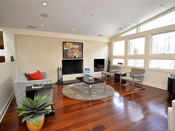 Vacation all year from this one of a kind home situated on beautiful park like piece on property on the Mianus River. Completely redone this wonderful home is light and bright with an open floor plan & walls of glass with views of the grassy green yard and magnificent river. Tile foyer with skylights, Living room & family room with vaulted ceilings, hardwood floors & a fireplace along with sliders to the wrap around deck. Dining area with built ins, dry bar & wine chiller & sliders to the mahogany deck. Magnificent eat in kitchen with granite counters, tile backsplash & stainless steel appliances encompassing a comfy sitting area great for relaxing on the couch & a large walk-in panty. A powder room completes the first floor. The bedrooms are conveniently situated on the main level below with doors to the beautiful outside patio & yard. The master suite has a walk-in closet, & sitting area with a fireplace that is great for a nursery or office along with a gorgeous bath with double sinks, whirlpool and a large walk-in shower. There are two other bedrooms, both with baths. The laundry room is conveniently tucked away. There is a separate office off the garage which offers privacy & quiet time. This spectacular contemporary home has 8 zones of radiant floor heating thru out the lower level, central air, a generator, security system & surround sound. Come & enjoy this property with this gorgeous setting that is great for entertaining or comfortable family living.