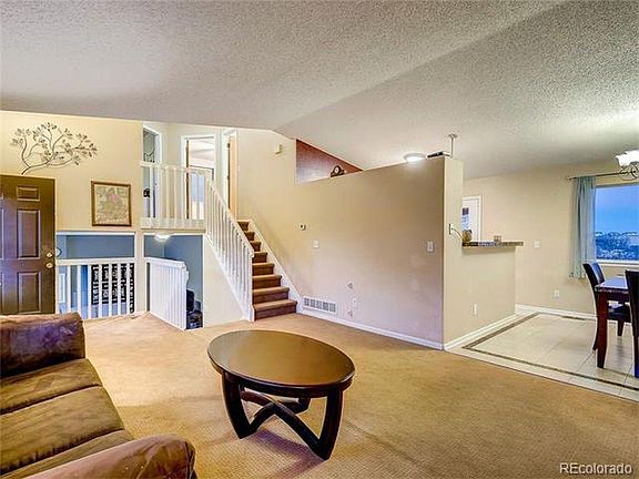 Exceptional, well maintained, 3 bedrooms, 2 Baths, 2-car garage, vaulted ceilings, cozy kitchen with marble counter tops and tile floors. Nearly new appliances, washer and dryer incl., Sprinkler, New furnace, A/C, ceiling fans, Ample storage under stairs. Magnificent view and access to Douglas Co. open-space. 1 small dog only, No cats, please. Available late JULY. SHOWN BY APPOINTMENT PLEASE. Owner pays HOA fees, including trash pickup and membership to community pool and clubhouse. Washer and dryer in utility room. 2 car garage with rear access.
