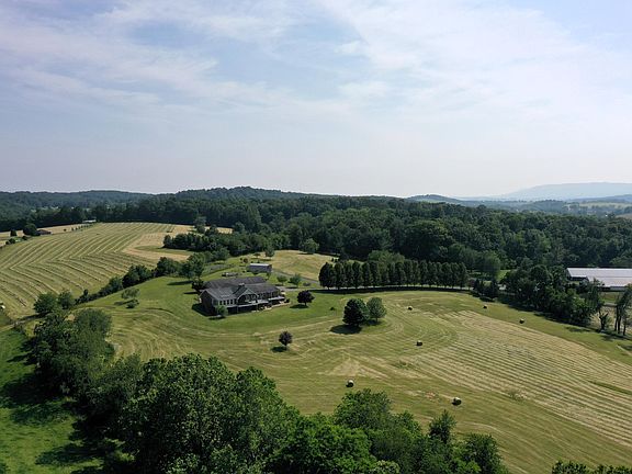 Unwind to breathtaking mountain views at this expansive hilltop residence on over 17 acres just west of historic Staunton, Virginia. Featuring 4 bedrooms and 3.5 baths all on one primary level, this view-oriented property is a car enthusiast's dream with an attached five-car insulated garage, complete with a workshop and exceptional storage. Enjoy delightful living spaces, including a living room with stone fireplace, vaulted ceiling, and wood beams, a spacious master suite with walk-in closet and three-season room opening to the rear deck, and an in-law suite with dedicated access--ideal for multi-generational living. The unfinished walkout lower level provides huge expansion potential, perfect for hobbies, workspace, or future living areas. Outside, take advantage of dramatic long-range mountain views, multiple storage outbuildings, two fenced gardens, a water feature under a pergola, and a shooting range with bench. Additional features include four heat pumps, two propane fireplaces, 400A electric service, and a generator connection. This exceptional property offers stunning sunsets and scenery in a private, end-of-the-road setting just 7 miles from downtown Staunton and 50 miles from Charlottesville. Note: Nearby agricultural buildings are chicken houses.