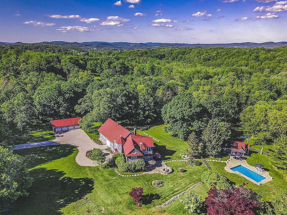 Huge Price Reduction!!A true compound offering a unique and harmonious blend of old and new. 1800's barn as the main feature incorporated into main living room with a seamless blending of 1950s wood paneled Living room and Dining room and stunning 2000s white cabinet and stainless Kitchen. Plus newer Master Bedroom with balcony and built in closets and full bath. Wide open level lot with Inground salt water pool with solar heating, Pool house with full bath and kitchenette outdoor shower Clay tennis court, and 4 car detached garage.