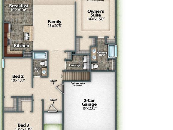 Beautiful full brick accent ranch style home with contemporary open floor plan! The Finlay offers everything you need on one level with that extra space over the garage for a play/game room. Lovely granite and stainless steel appliances come in the kitchen and the cabinetry and granite flow throughout the home as well. The owner's suite has a stunning tray ceiling complete with en suite bathroom that includes a separate garden tub and shower! Come check out this perfect for entertaining house.