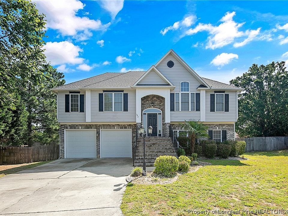 New Luxury Vinyl Floor, New Carpet, fresh coat of paint in the inside to include the garage, this split-level beautiful home is located in a private cul-de-sac in The Summit subdivision. 4-bedrooms, 3-full bathrooms, oversize family/flex room, combined living/dining room, breakfast nook, 2-car garage, laundry, and spacious fenced backyard. Find the Master Suite in the main level with private deck access, full bath with double vanity, jetted tub, tiled shower with seat, and walk in closets with shelving and cabinets. Two additional bedrooms and 1-full bathroom finished the main level. Downstairs, you will find the In Law Suite with full bathroom, the large family/flex room, and the laundry. Owner added Epoxy to garage floor. Convenient to shopping, restaurants, schools, Fort Liberty, and Sanford.