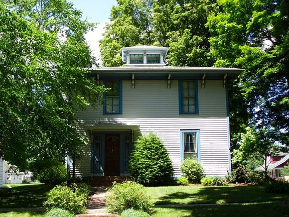 This classic American Foursquare Folk Victorian home has gorgeous architectural details like decorative scroll corbels and is topped with a widow's watch. Inside, residents enjoy an expansive floor plan which includes a library, a large living room with a bay window, and a master bedroom w/ 2 walk-ins and bath en suite.