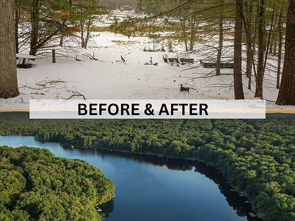COUNTRY LAKEFRONT 2 STORY HOME OFFERED AT AN EXTREMELY REDUCED PRICE. INVESTORS ALERT!!! Needs siding and no guarantee of properly working septic or kitchen appliances. Huge newer deck to enjoy the lake views. Brand new front glass sliding door and steps/railing. Lake home offers fantastic lake views from all the glass doors on rear side of the home and beautiful hardwood flooring in the main living area. Heated by a brick faced, wood stove insert and electric baseboards. Bedroom and full bath on main floor, 2 more large bedrooms upstairs with glass sliders to screened porch and a 2nd full bath. Full unfinished basement with a walk out to store water toys. Community amenities include several lakes, outdoor pool, fishing, baseball field, children's playground, basketball court, road maintenance and security.