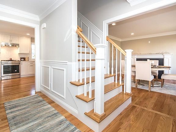 Welcome to this beautiful new home located near Needham Center! This fantastic house has a chef's kitchen w/ high end appliances & custom cabinets leading to the living/family room and dining room w/ gas fireplace. A Half Bath/laundry room is also located on the first floor & mudroom w/ direct entry to the garage. The main level features beautiful wainscoting & crown-molding throughout. The 2nd floor features a master bedroom suite w/ gas fireplace, private sitting room & large his & hers walk-in closets. Stunning master bathroom has marble flooring, double vanity, shower & soaking tub. 2 large bedrooms & additional full bath complete the 2nd floor. The 3rd floor has a 4th bedroom w/ full bath & bonus room perfect for in law or au-pair. The lower level is finished w/ wall to wall carpeting, full bath & direct yard access, a great space for children & friends to gather. The large deck leads to a beautifully landscaped yard, perfect for entertaining! Walking distance to town center.