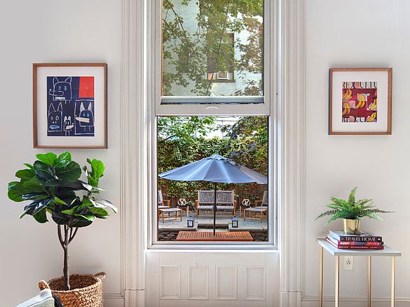 Welcome to your Brooklyn dream home in Fort Greene offering the best of all worlds - stylish brownstone living with private yard in a renovated condominium with low monthlies on prime park front property - why not have it all? With over 1000sf of interior square footage and 660sf of private outdoor space, this is a rare and unique opportunity to own a spacious and character-filled 1BR/1.5BA brownstone condo duplex in a prime location right on Fort Greene Park. Located on one of the most coveted, charming and picturesque brownstone blocks - this property is quiet and tranquil, with abundant natural light, an incredible volume of space, and unique charm. The first floor of the duplex features a massive living room with a decorative fireplace, 10' ceilings and three over-sized (nearly 8' tall) East-facing windows overlooking the lush greenery of your own private garden. The duplex features hardwood floors throughout, exposed and whitewashed brick walls, and decorative moulding, all with an abundance of closet and storage space. Just off the entry hall there is a perfect home office nook, a large double-wide coat closet, as well as a full bath. The renovated bathroom features a classic aesthetic with a contemporary touch, a porcelain pedestal sink, vintage floor tile, and a walk-in shower. Framed by a semi-round arched opening, the farmhouse chic kitchen opens onto the living room with white Shaker-style paneled cabinetry, butcher block counter-tops, a double sink with garbage disposal, full sized GE appliances, polished nickel hardware, and a large pantry closet. A wonderful entertaining space, the open style kitchen and abundance of living room space allows for a dining area and the perfect setting for dinner parties or a place for friends and family to gather. The lower floor of the duplex is currently used as a king-sized master bedroom suite. Equal in scale to the floor above - this garden level over-sized bedroom has three large closets, under stair storage, a renovated half bath (with potential to convert to full bath), an in-unit washer dryer, two half windows and door access to the private outdoor space. From the master suite one accesses the pièce de résistance of this property - your very own 660sf private yard. Basked in sun, the two-tiered lush outdoor space is a gardener's dream fitted with blue stone pavers, mature trees, and a perimeter garden with an irrigation system. Quiet and serene, the abundant outdoor space allows for outdoor dining, grilling, lounge area, and more. Originally built in 1885 and converted to condominium in 2004, 162 Washington Park is a well maintained 17' wide brownstone condominium with 5 residences located directly across from Fort Greene Park. Located in one of Brooklyn's most desirable neighborhoods, you have convenient access to multiple subway lines (C/G trains in closest proximity, but also easy access to B/Q/2/3/4/5/LIRR at Atlantic Terminal and a multitude of other lines nearby), a plethora of restaurants and shopping nearby on DeKalb and Myrtle, as well as Trader Joe's, Wegman's, Whole Foods, and the weekly farmer's markets all within walking distance. Pets considered upon condo approval. Building is wired for Verizon FiOS. Showing by appointment only.