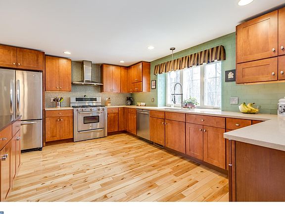 The owners of this home have renovated the main living level and the gorgeous kitchen is open to the rest of the living space. This improvement completely changes the living area of the home and it is what designers and home builders are featuring in 2018! This home is the popular Henley model, the largest home in Wexford Leas, and it has 3 full baths and a half bath. Move in and start enjoying your remodeled and updated open kitchen with beautiful views of the backyard. The Kenmore 6 burner gas stainless range, sleek range hood, stainless appliances, warm wood cabinetry and tons of counter space make this a wonderful kitchen for cooking and entertaining. The family room features a wood burning stove and the dining area has a newer sliding door that leads out to the side patio. The main floor master bedroom is spacious, and the beautiful master bath has been expanded and updated with new flooring, walls, tiled shower, lighting and a vanity. The first-floor main bathroom has also updated with a new vanity, floor, tiles and the powder room has also been updated. Bonus feature of this home is the lovely sunroom with heat. Perfect for relaxing and enjoying the view large fenced backyard. It is rare to find this model in Wexford with a large backyard. Most of the time the house takes up the land around it. The roof has been replaced (2007) with dimensional shingles and has a lifetime warranty. There is recessed lighting in almost every room. This home has a basement with drywall, ceiling and electric so Buyers can easily finish it exactly to their needs. Wexford is a great neighborhood on the East side of Cherry Hill with close proximity to schools, shops, restaurants, Philadelphia and the Shore. Walking distance to Stockton elementary school and swim club. Price per square foot is a value when considering the size of the home, new floor plan, location, yard size, sunroom, privacy, basement and upgrades of this home. Seller is including 1 year home warranty for Buyer.