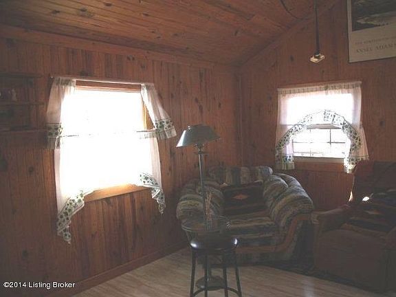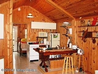 Compact and well kept cabin fully furnished. Comes with 1.5 acres of beautiful wooded land with landscape. Wood interior and cathedral ceiling like new! Has 2'' wrapping insulation inside and outside walls. Has a detached deck which goes into the woods. Boat house flooring (hardwood floor that is waterproof). Location is on Wilderness Road, 1/3 mile from boat ramp, south side of Nolin (Brian Creek) State Park. Note: map does not show right location--cabin is on the right side of Wilderness Road once you pass Jaggers Road. Site includes detached deck, parking & BBQ table. Storage under back deck. Window air units remain. Great place for a family get-away! Must see! See attached map and full instructionsheet for complete directions.