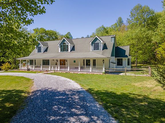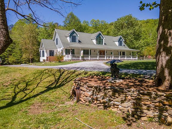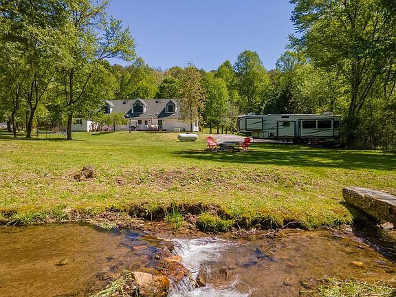 MOTIVATED SELLER! Priced to SELL! Stunning home on 3.27 acres of unrestricted land straddling both sides of the rushing Rickman Creek. All of the land is usable & beautifully landscaped. RV parking spot in place & a gazebo that is perfect for entertaining w/a 2nd building site across the creek. Home next door is for sale! Buy both for family compound or investment properties. This custom-built home offers 3000+ sqft of living space w/3 beds, 3.5 baths, & a bonus. The cozy living room has a fireplace. The custom-built kitchen has cherry cabinets, double ovens, & on-demand hot water faucet. The oversized formal dining room has gas logs & a breakfast nook corner. A walk-in pantry with an antique slider door is in the hallway. Large primary on the main with a large updated bathroom & soaking tub. Upstairs has 2 bedrooms, 1 bathroom, & a landing area. On the lower level, you'll find commercial-grade dehumidifiers, a radiant heat system, a whole-house generator, a central vacuum, a water filtration system, & a workshop area. Each room has its own thermostat for the radiant heat & central air for the cooling system. Huge front porch upon arrival & easy flat & level gravel driveway.