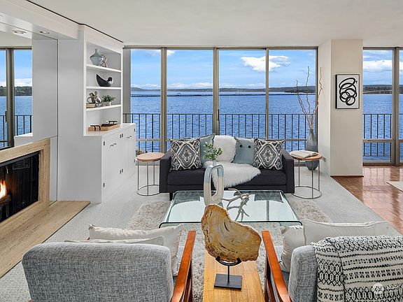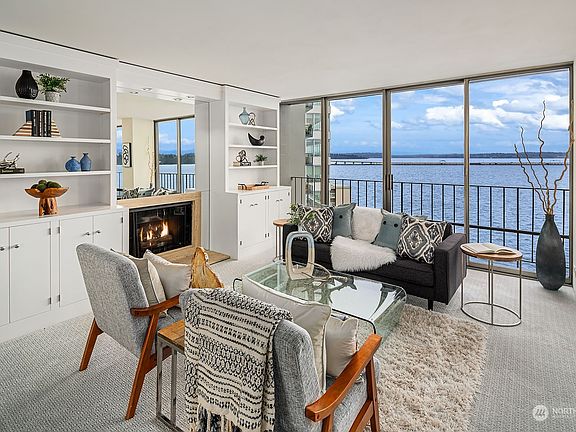 Savor the good life on the water's edge in this highly sought-after Roland Terry-designed tower steps from the Madison Park village and beach. The floor-to-ceiling windows captivate you with sweeping views high across Lake Washington. Open the sliding doors to fill the space with the sweet sounds of lapping waves. The experience of the lounge and dining room is so delicious you may want to keep it for yourself, but the layout is also ideal for entertaining should you feel called to share it with others. Wake up to inspiring sunrises that bloom across the horizon. Rarely does a residence become available in this well-managed building with amenities that include a 24-hour concierge, private dock with day moorage, pool, gym, and rooftop deck.