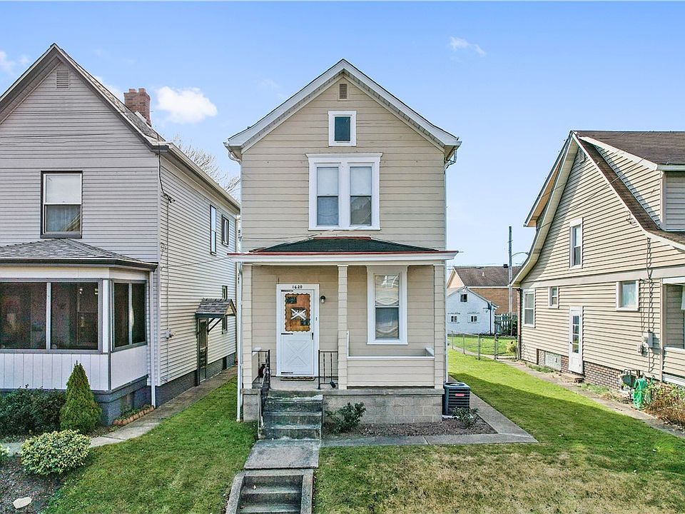 Lovely 2 Bedroom Home located in the Heart Of Oak Hill Neighborhood- New Brighton! This home offers tabletop flat yard, detached 1 Car Garage and TWO additional off-street parking spaces! Welcoming Living Room flows into the Eat In Kitchen. Main Floor Powder Room! Upstairs you will find a full bath. There are two nice sized bedrooms on the second level, both have the beautiful original trim. One bedroom offers a large second closet. Basement offers storage and laundry area. Small porch off rear of home offers covered area to enjoy your outdoor space. Walk to Football Field and Neighborhood Coffee Shop.