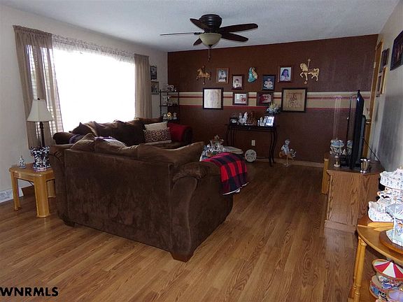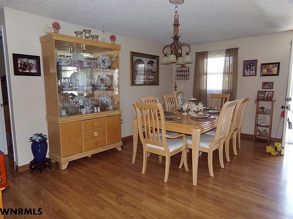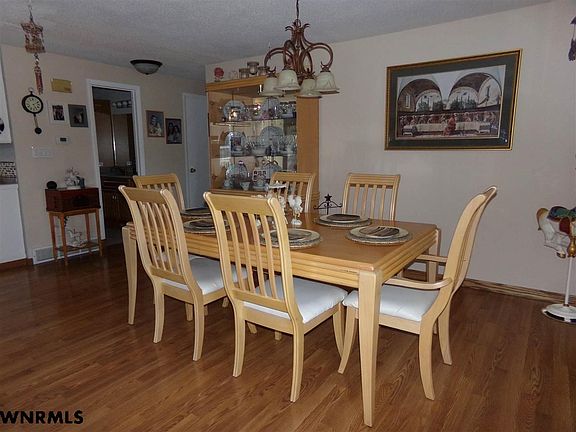 Ranch style home with updates throughout! Great location for this 3 bedroom, 2 bath home in Gering! Open concept living and formal dining with laminate flooring. Eat it kitchen has sliding doors to wonderful deck/covered patio and beautiful fenced in yard. Basement family room features gas log free standing stove. Primary suite in basement with walk in closet, jetted tub and separate shower. All appliances stay including the washer and dryer. Newer HVAC and water heater. This well cared for home is ready for a new owner!