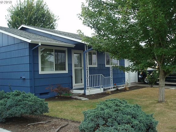 Woodburn Senior Estates gem with private fenced back yard & 12x20 covered patio. Home has a nice flow to the floor plan. Hardwood floors. Clean & ready for you! Garage is 10.6x27. Utilities & mud area are in the back with access to the yard & residence. Community offers exercise room, pool, golf & fun classes as well as activities.