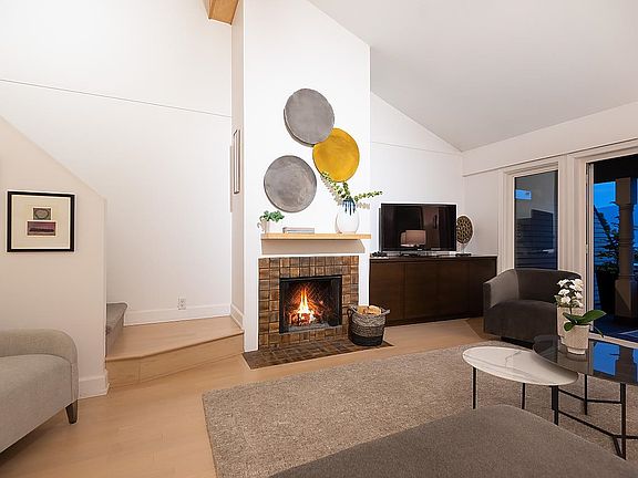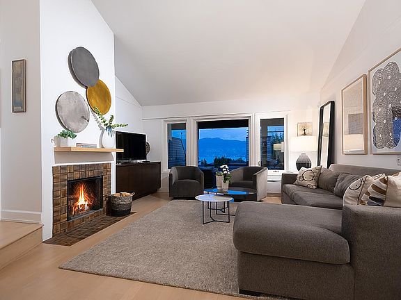 Kits living at its finest. Extra large 2 bedroom with stunning Ocean/Mountain views one block from the Beach, Sailing Club and Pool. For the most discerning buyer, this penthouse loft home has been meticulously updated over the years with large European designed kitchen; perfect for entertaining. Living room features high vaulted ceilings, wood burning fireplace and large, private deck to enjoy the unobstructed views of English Bay. Separated bedrooms with master bedroom and beautiful ensuite on the lower level with 2nd bedroom in the upper loft with ensuite powder room. One parking and one storage locker included. Two dogs or cats allowed, rentals not allowed. Still available and easy to show!