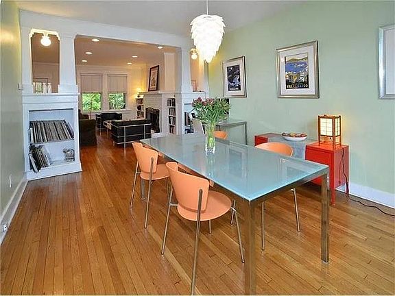Spacious townhouse in a secluded garden courtyard, located in a beautiful residential Squirrel Hill neighborhood. 3 1/2 bedrooms, unfurnished, hardwood floors, period details, updated full bathroom with double sink. Skylights fill the large 3rd floor bedroom with light. Central A/C. An easy walk to Squirrel Hill shops and restaurants, half a block from the bus line to CMU and Pitt. Front porch giving on to the courtyard. Come home to this quiet oasis in a family-friendly location, centrally convenient to Pittsburgh's East End. Attentive owners are a family in Pittsburgh who used to live here. Last month's rent and security deposit due with lease. Credit check required. No smokers please. Cats allowed for small additional fee. Owner pays water, renter pays other utilities. Appliances include washer and dryer, dishwasher, gas stove, refrigerator. Forced-air heating and central AC with split for 3rd floor. Basement opens to driveway for easy bike storage. Parking is on-street, but a Level 2 charger at driveway allows you to park and charge your electric car for short periods.