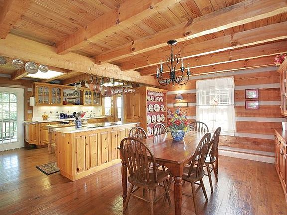 AMAZING HEARTHSTONE HAND HEWN LOG HOME WONDERFULLY APPOINTED ON A PRIVATE LEVEL 5 ACRE LOT WITH YEAR AROUND BREATHTAKING MOUNTAIN VIEWS. LOVELY FAMILY ROOM WITH EXPOSED BEAM CEILING AND STONE MASONRY FIREPLACE. BEAUTIFUL KITCHEN, DINING ROOM, BREAKFAST NOOK, AND OFFICE ON THE MAIN. THREE BEDROOMS UPSTAIRS. FULL FINISHED IN-LAW SUITE ON THE TERRACE LEVEL INCLUDES KITCHEN, LIVING ROOM AND BEDROOM. THIS LOVELY LOG HOME IS SURROUNDED BY MATURE ORNAMENTAL LANDSCAPING, A 30X40 BARN/WORKSHOP, A 4 CAR DETACHED HOBBY GARAGE AND A TWO CAR ATTACHED CARPORT. ONE OF A KIND HOME!