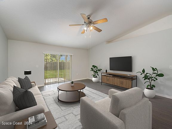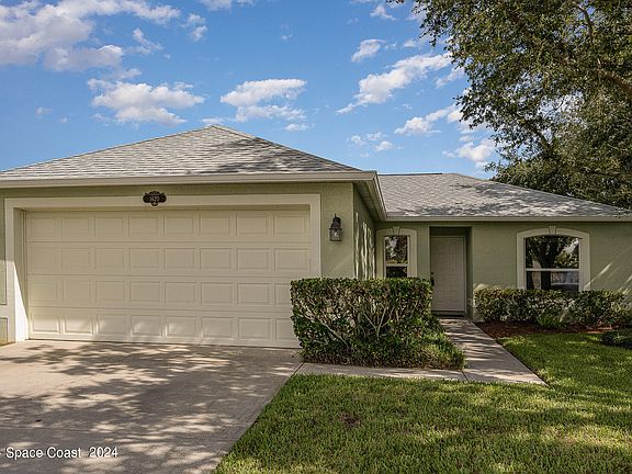 Nestled in a gated neighborhood in West Melbourne, this 3 bedroom 2 bath home is looking for its next loving owners. The home is conveniently located close to restaurants, shopping, major employers, beach access and interstate access for the commuter. It is also convenient within the neighborhood, right across from the community pool, making fun just a short stroll across the street. The home features a split bedroom floor plan, with a great room with vaulted ceilings separating the bedrooms. Primary Bedroom has walk in closet, and bath has separate shower and soaking tub. A/C replaced in 2016, Roof in July 2023. Recent fridge as well. This property offers an affordable opportunity to get into one of the best school districts in Brevard county at a good price.