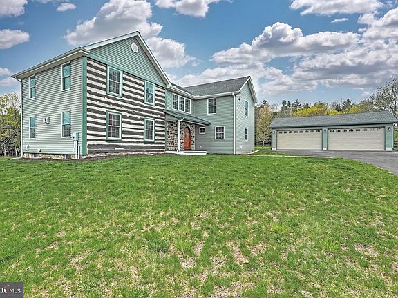 Exquisitely preserved two story log home with over 2,000 sq. ft. addition that reflects and expands the character of the original 1800 structure. If you want a completely new home but love the charm reminiscent of something older, this property is for you! From the moment you walk through the uniquely arched front door into the open stairway, family room/country kitchen you will be saying WOW! The kitchen/family room features new, white oak wood flooring, beautifully crafted cabinetry with granite counter tops, deep stainless farm sink and all new stainless appliances. Mud/laundry room off kitchen has everything you need. New washer and dryer, coat closet, pantry and entrance into the half bath. All with ceramic tile flooring. The separate living room features exposed logs, a parlor propane gas stove and carpet. When you ascend the open stairs you will notice the steps were created from the old floor joists and the oak railing was hand crafted. All of the wood trim in the house was created from the original wood flooring. The master bedroom also features exposed logs, double closets and a wonderful master bath with a subway tile shower, tile floors and a marble sink top. The other additional 3 bedrooms are each of a generous size and the entire second floor is carpeted. Don't forget to visit the great family room in the basement with all new engineered flooring. Check out the furnace and utility room. There is a lovely old fashioned porch that runs the entire length of the addition. Perfect for morning coffee or watching evening sunsets. The detached garage has a woodstove and plenty of space for your work bench.