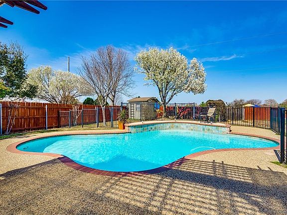 Beautiful 2 story home on cul-de-sac lot backed up to park, lockable gate gives you access to park from the backyard. Mature trees, close to walking trails. Open living room and kitchen with view of covered patio and play pool (pool resurfaced in 2017). Upgrades incl. granite counter tops in kitchen, master bath, utility and upstairs bath. Vinyl clad windows replaced in 2013. Shed for storage in backyard. Roof replaced 2011. Master bedroom sitting area with view of waterfall in the pool. Sought after Flower Mound school system. Great storage area under stairs. Close to shopping and restaurants. Kitchen and master bath feature tile floors while the family room, entry and utility are laminate wood. WELCOME HOME!