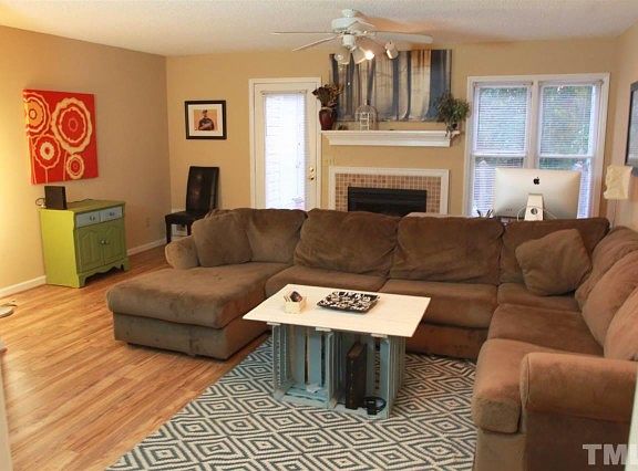 Adorable Townhome close to NCSU and Centennial Campus! New laminate floors on main level, tile flooring in the foyer and kitchen, with a cozy wood burning fireplace anchoring the family room. Great outdoor living space with a deck ideal for grilling out. Dual master suites with full baths and walk in closets! Huge walk in crawl space with approximately 11' ceiling, concrete pad, and wired with electrical outlets. Outstanding rental property!! Don't miss out!!