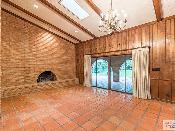 This elegant 5-bedroom, 4-bath home is located on a 2.48 acre resaca lot in the exclusive Espiritu Santo subdivision. The curved driveway is lined with mature trees and leads to a covered porch and carved-wood double entry doors. Inside, find Saltillo tile floors, vaulted ceilings with exposed wood beams, skylights and natural brick accents. This home has formal living and dining rooms, a spacious great room with fireplace and a bonus room/game room. The kitchen has ample storage, a central island, and a large breakfast area with a built-in serving and storage area. Other features include a well-equipped laundry room, a second bonus room/office, large covered patio with beautiful water view,lawn irrigation from the resaca and a security system.