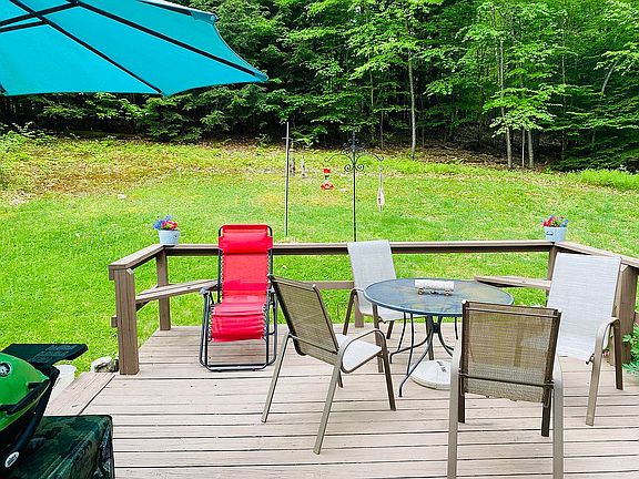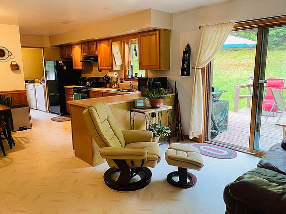 Nice 3 bdrm, 2 bath home with a woodsy private surrounding only two mi. from town. Great big garage for any car enthusiasts or shop entrepreneur to enjoy. Partial finished basement can be made back into a nice family den or office. Has been used as both in the past. Needs some loving care with light maintenance like interior paint, deck paint, wash outside vinyl siding, some landscaping. We are a retired and cannot keep up with regular maintenance anymore. Wildlife abounds in the back yard, turkeys, deer, fox, and the occasional bear or two! Come see what you think!