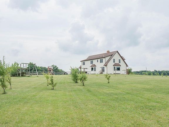 This 5 bedroom home features 2.5 baths, 2 fireplaces, main floor laundry, built-ins, hardwood floors, generous sized bedrooms, full basement with walkout door, and incredible views of the countryside! The kitchen in this home is great for family gatherings and includes one of the fireplaces. The covered patio is great for grilling out or relaxing while taking in the gorgeous views. Not only does this home have a 2 car garage, but it also has a 36 X 45 pole building with power and concrete floor! This property is a must see, set your appointment today.