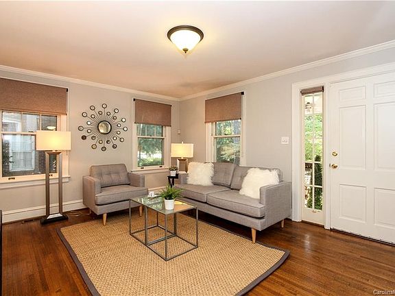 Historic Dilworth home built in 1929 on tree lined street with picture perfect curb appeal. Perched high above the main road and surrounded by mature trees this traditional brick home has an inviting covered porch, porte cochere with drive thru to the expansive backyard. Once inside this 5 bed/3 full bath home features two masters suites including one on first floor that is currently being used as large family room. Second floor master suite features a huge walk in closet closet/dressing area with center island and built in storage. The luxury bath has double sinks, soaking tub and walk in shower. With three additional bedrooms plus an office with built in desk and bookshelves this home has plenty of space for all. The low maintenance yard features extensive landscaping and turf yard. No lawnmower needed! The detached garage and carport is the perfect spot for outdoor entertaining and or storage. Steps to Latta park and East Blvd!