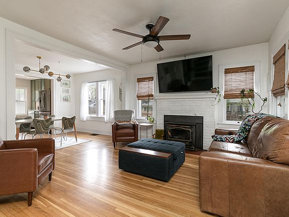 - Fireplace features: Blower Fan, Brick, Insert, Living Room, Wood Burning
