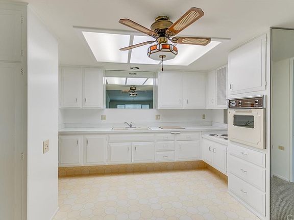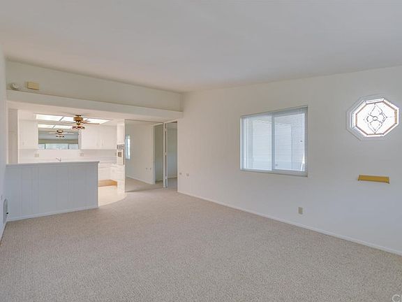 Mutual 12. Southeast facing partially expanded CORNER UNIT IN A 4 UNIT BUILDING with a Fantastic green belt view. It has a large high side patio with entry gate, indoor / outdoor carpet and very large walk in storage closet. This charming home has, new interior paint, new Berber carpet, double pane windows and all of the ceilings have been knocked down. The front door has a security screen and leaded glass inlay. The living room has a leaded glass porthole window, window blinds, wall air conditioner and a wall heater. The high side bedroom has window shutters. The kitchen has a large skylight; mirror over the sink, vinyl flooring, ceiling fan and a new refrigerator will be installed prior to the close of escrow. The bathroom has Berber and vinyl flooring, an opening skylight, highboy toilet, and set down shower. The master bedroom has a large walk in closet and window blinds. The carport is located in building 137, space 39.