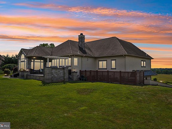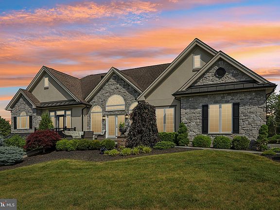 Rarely does a home of this caliber come along. Situated on almost two rolling acres with a rear view of Worcester Golf Club and a front view that goes on for miles - and always will thanks to Evansburg State Park Grounds. The sunsets from the front terrace are gorgeous and unmatched in the area. This distinctive custom built ranch/rambler home allows for many living options. The main floor is 2480 square feet of luxury and comfort which includes a sunroom, huge kitchen with an entire wall of windows, spacious living/family room, primary bedroom with a luxurious ensuite and laundry area. The matching footprint lower level is also 2480 square feet and has its own separate entrance, three bedrooms, and a large living area that could be utilized as a game room, second family room, or workout area. The versatility of this space makes it conducive to almost any living arrangement your lifestyle requires. For the garage enthusiast, this oversized space is over 12' tall, has an epoxy floor, sink, built-in cabinetry and inside access. Since purchasing this home in 2015 almost every square inch inside and out has been improved, upgraded and enhanced to create a home of sophistication and convenience. Some enhancements of this distinctive home include hardwood hand-scraped floors on the main level, outdoor entertaining area with 36" grill, sink and fridge adjoining the personal pond and waterfall, Thermador and Bosch stainless appliances, heated floor in main bath and walk thru shower with 7 jet sprays, 3 new high-efficiency heating and cooling systems, abundant hardscaping and lush landscaping, redone stucco and new garage doors, plus handsome metal accent roof. Ask for the extensive list of improvements and plan to come see this meticulously maintained home at one of our 4 open houses. Don't settle for ordinary when you can have the exceptional!