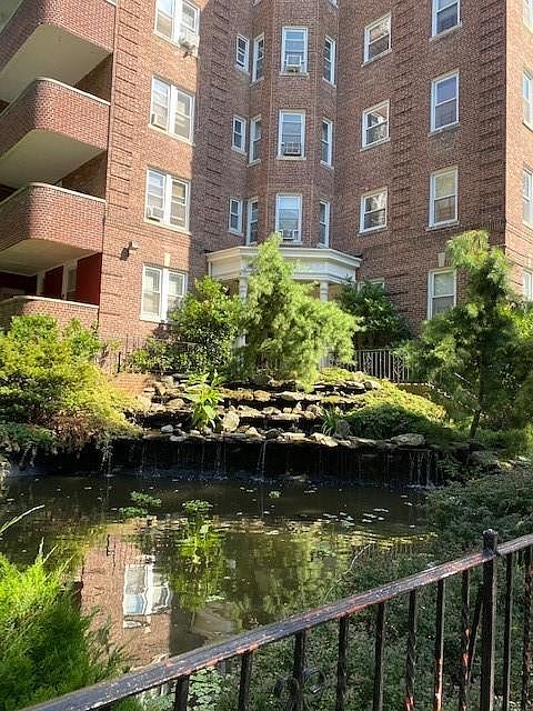 The gorgeous Waterfall Apartments are named for the tranquil garden and waterfall at the front of this six story elevator co-op; but the apartments inside are sought after for the gracious size, views and convenient location. This is a studio apartment with nice size living area, bathroom the window, kitchen with the window . The Waterfall Apartments have parking and storage available in the building(reasonable charge) and are located in a green leafy enclave of lovely townhouses just one block from the Express Q Train.