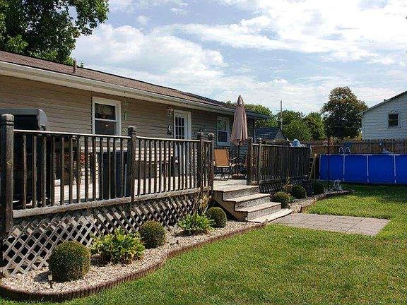 Property offers loads of features for the money. Newer HE furnace. Updated 200-amp electric. Vinyl replacement windows. Newer carpet in living room & hall. Updated kitchen with newer appliances, breakfast counter & walkout to huge 12x34 deck. Master bedroom with full bath. Remodeled basement with L-shaped family/rec area and office being used as additional bedroom. New vinyl railing on covered front porch. Large beautifully landscaped lot with fenced rear yard having newer wood privacy fencing, new above-ground pool with new deck, landscaping pond and two storage sheds.