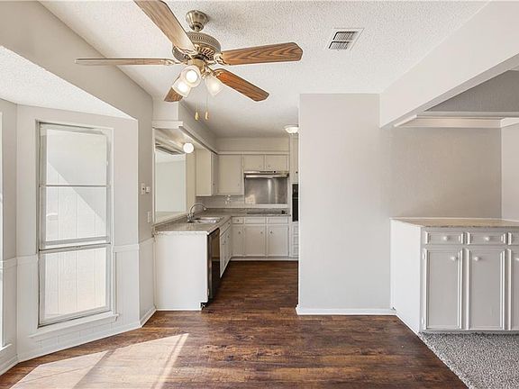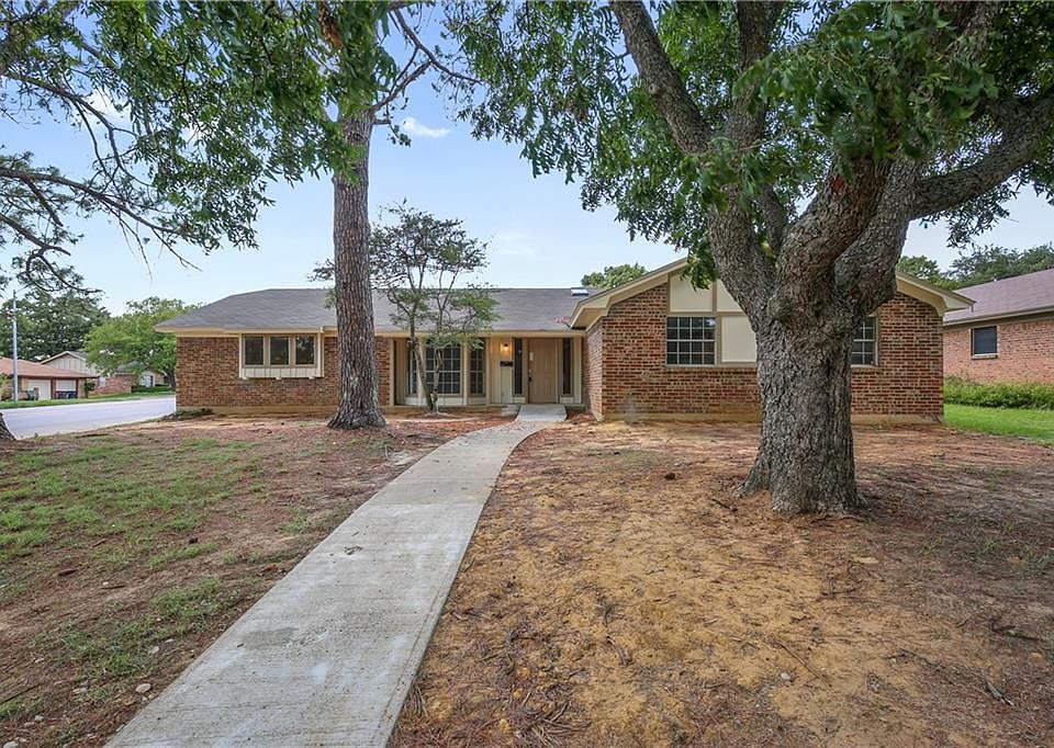 This Fort Worth one-story offers marble kitchen countertops and a wood burning fireplace. Upgraded features include fresh interior and new carpeting in select rooms. Home comes with a 30-day buyback guarantee. Terms and conditions apply.