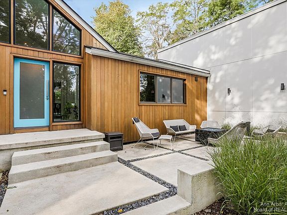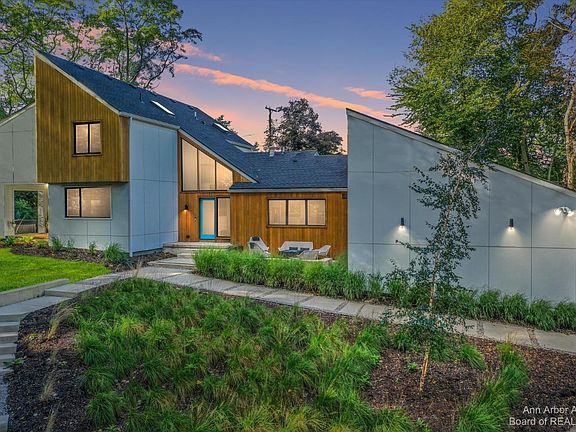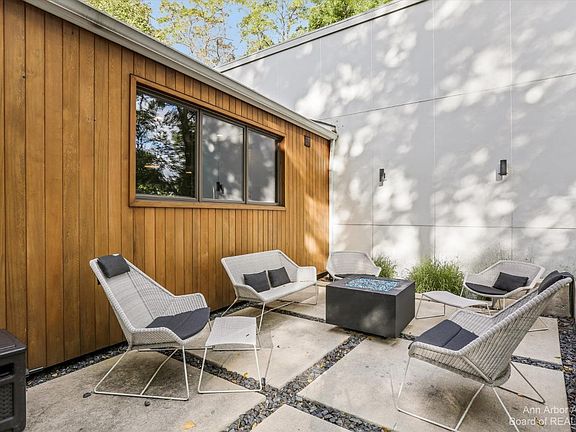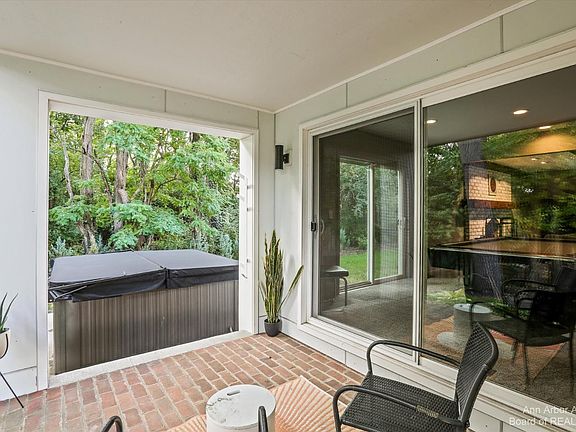 This beautiful contemporary perched high up in the hills of Ann Arbor Hills has been incredibly reimagined with every wonderful finish, fixture and finery you could hope for! Kick things off with the most inviting entry ever with its sun dappled fire pit patio just one stunning element of this custom designed landscaped front yard. Stroll inside and all the magic begins: gorgeous center island open kitchen with high ceilings and streamlined cabinetry nested by a cozy family room. The best sight lines ever connects up to your fantastic dining room leveling up to your limewashed brick fireplace great room that includes walk outs to covered and open patios front and back! You will fall in love with your private office outfitted with a Sub Zero beverage center ripe for your favorite refreshme refreshments. Up the open staircase you'll find 4 absolutely terrific bedrooms including your primary en suite with fireplace, vaulted ceiling, walk-in closet, and sleek finishes. The Lower level doesn't disappoint: wellness area, gaming and second entertainment space. A huge yard awaits any outdoor activity! Trader Joes, Whole Foods, Arbor Hills Shopping, Tappan Middle School, Racquet Swim and Tennis Club - literally steps away! Best of the Best!, Primary Bath, Rec Room: Finished
